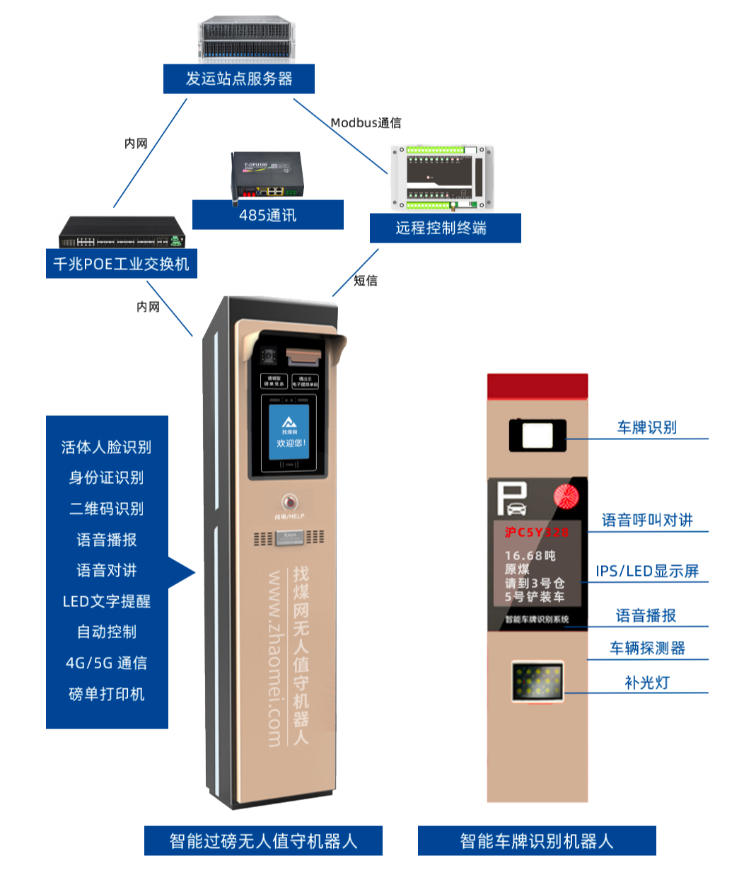 ░ 此外,智能过磅无人值守机器人可多联票单自动打印、分联、盖章;该系统可以和ERP管理系统以及铁路发运系统协同联动,数据可自动上传分公司调度中心。