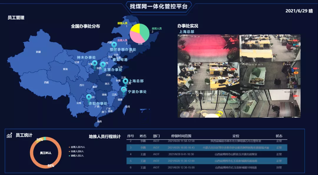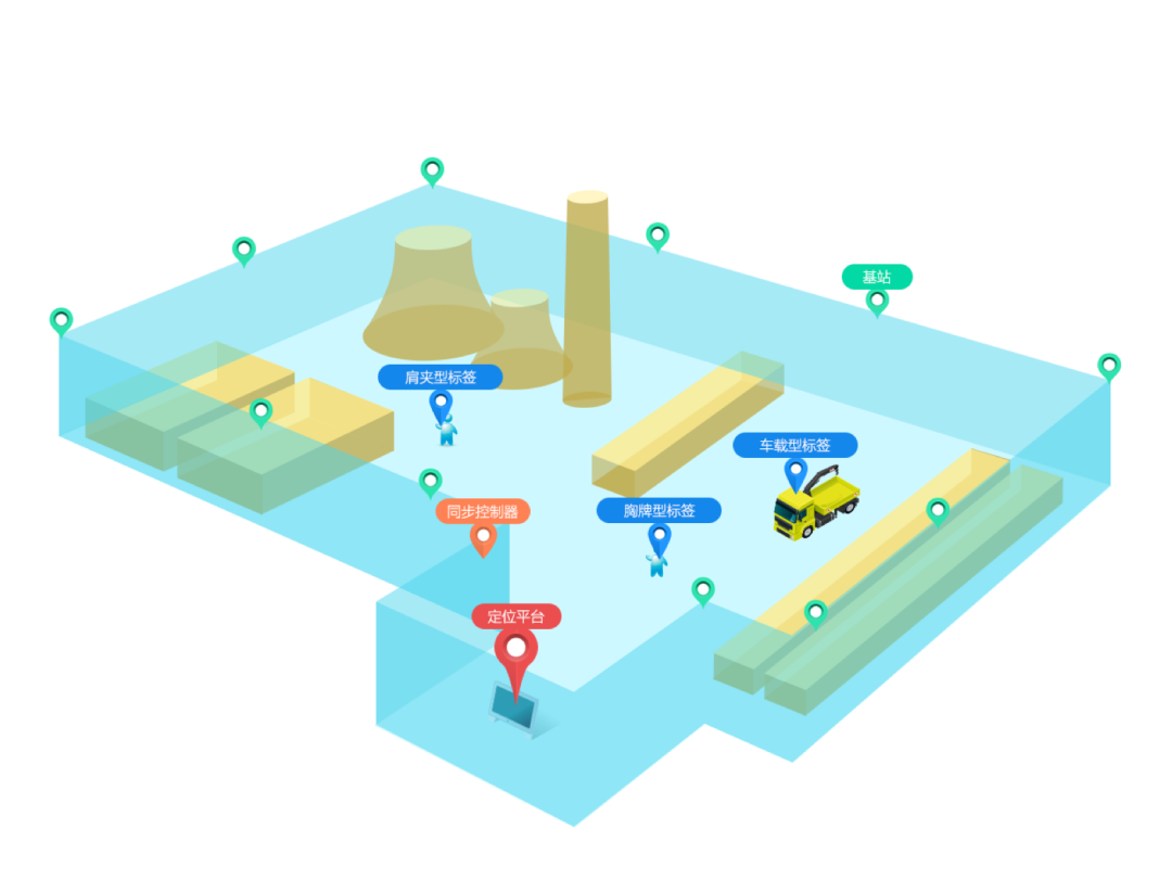 通过安装定位基站,覆盖整个厂区包括室内,对人员、车辆、设备进行识别和定位;